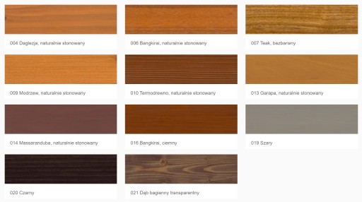 - do transparentnego barwienia drewna dębowego oraz drewna eukaliptusowego, Teak i innych gatunków egzotycznych