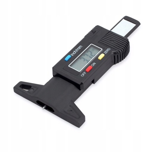 Precyzyjny cyfrowy miernik wysokości bieżnika opon, grubości tarcz oraz klocków hamulcowych.