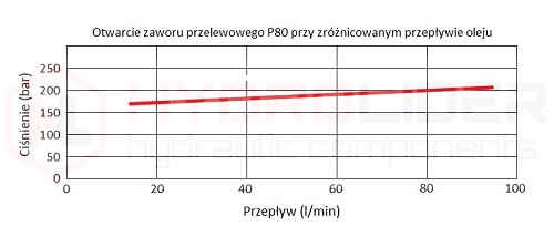 Ciśnienie otwarcia zaworu przelewowego rośnie proporcjonalnie wraz ze wzrostem przepływu: