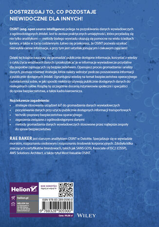 Dzięki tej książce nauczysz się gromadzić publicznie dostępne informacje, korzystać z wiedzy o cyklu życia wrażliwych danych i przekształcać je w informacje wywiadowcze przydatne dla zespołów zajmujących się bezpieczeństwem. Opanujesz proces gromadzenia i analizy danych, poznasz również strategie, które należy wdrożyć podczas poszukiwania informacji z publicznie dostępnych źródeł. Ugruntujesz wiedzę na temat bezpieczeństwa operacyjnego i uświadomisz sobie, w jaki sposób niektórzy używają publicznie dostępnych danych do nielegalnych celów. Książkę tę szczególnie docenią inżynierowie społeczni i specjaliści do spraw bezpieczeństwa, a także kadra kierownicza.
