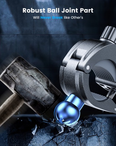 - Przegub kulowy umożliwiający obracanie i pochylanie głowicy względem mocowania do kierownicy.