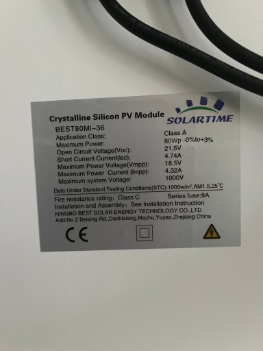 • Moduł fotowoltaiczny model: Mono Best Solar 80W