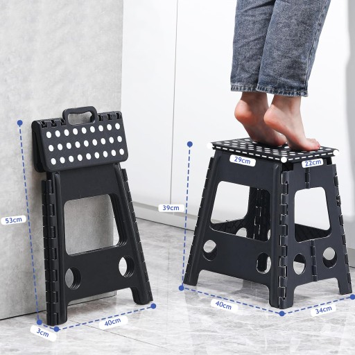 Przechowywanie nigdy nie było tak proste, po złożeniu taboret zajmuje minimum miejsca, więc można go "wcisnąć" w naprawę wąskie szpary pomiędzy meblem, a ścianą lub w innych miejscach.
