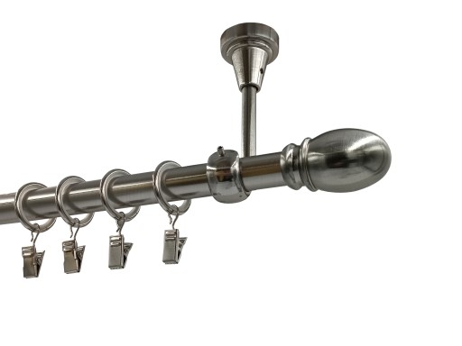 Na tej aukcji kupują Państwo KARNISZ METALOWY SUFITOWY pojedynczy o średnicy rurki fi 19mm w kolorze NIKIEL o długości 180 cm z wybraną końcówką.