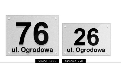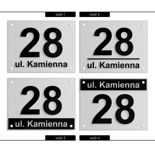 Tablica adresowa 33x25 szczotkowane aluminium - 4 wzory, 10 czcionek.