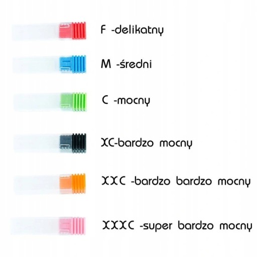 Wszystkie frezy mają oznaczenia w różnych kolorach, które oznaczają gradację.