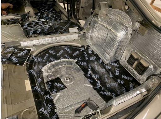 - Podłoga z przegrodą silnika: około 3,5 m2 maty butylowej + 3,5 m2 sztuk pianki kauczukowej;