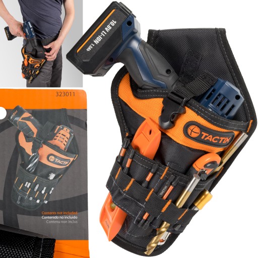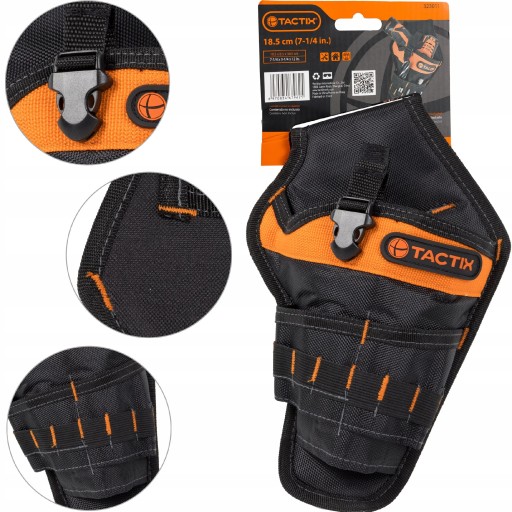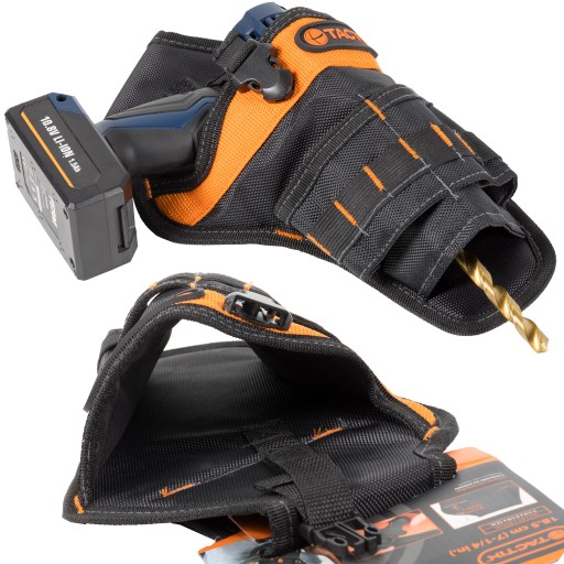 - Kieszeń na wiertarkę pasuje do pasów narzędziowych marki Tactix. Dzięki swojej uniwersalnej konstrukcji, kaburę możemy zapiąć również do zwykłego paska.