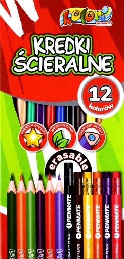 Kredki trójkątne ścieralne 12 kol. Penmate Kolori