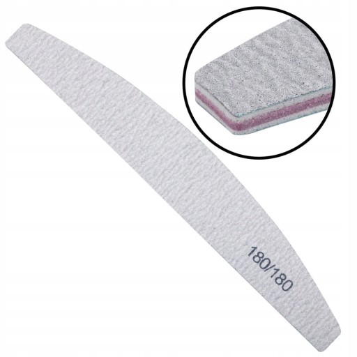 Jednorazowy, uniwersalny pilnik o gradacji 180/180 i kształcie łódki, do paznokci naturalnych i przedłużonych o niezwykle trwałych komponentach i długim czasie użytkowania.