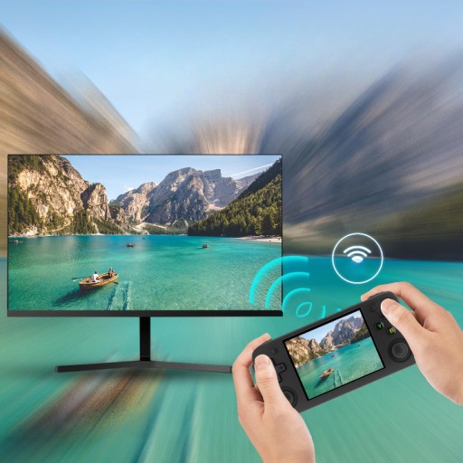 Konsola do gier RG35XX H może zostać połączona z telewizorem za pomocą kabla HDMI.