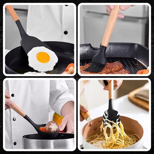 ✅ELASTYCZNE I DELIKATNE - silikon jest elastycznym materiałem, który nie rysuje powierzchni naczyń ani patelni. Silikonowe przyrządy są delikatne dla powłok naczyń, garnków i patelni, nie powodują zarysowań i nie uszkadzają powierzchni.