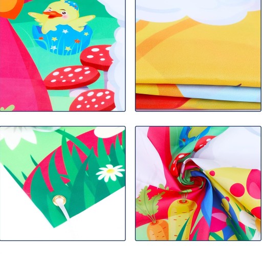 ✔️ Foto-ścianka stworzona została z myślą o Wielkanocy, dlatego znajdują się na niej motywy tj. zajączek, kurczaczek, baranek, pisanki, kwiatki itp..