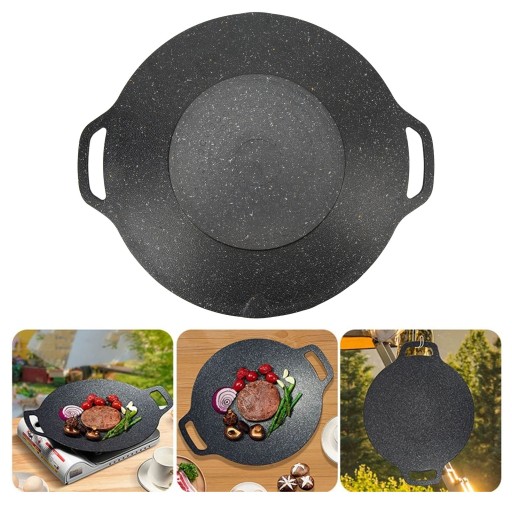 Koreańska patelnia grillowa z 6-warstwową powłoką nieprzywierającą, okrągła patelnia do grillowania do gotowania na świeżym powietrzu w pomieszczeniach, czarna