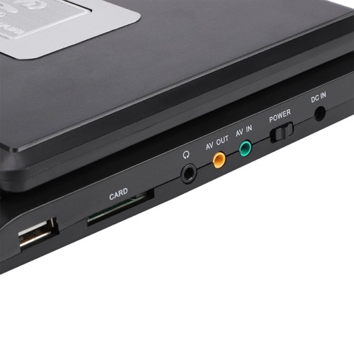 Obraca się o 270 stopni, zapewniając łatwą i doskonałą widoczność, jest odporny na wstrząsy. Ciekawą cechą tego przenośnego odtwarzacza DVD jest funkcja zapamiętywania punktu przerwania, co oznacza, że płyta DVD zostanie wznowiona od miejsca, w którym ostatni raz opuściłeś odtwarzacz. Podróżny odtwarzacz DVD ma wbudowany akumulator, który sprawia, że doskonale nadaje się do lotów i wycieczek samochodowych, a jego kompaktowy rozmiar pozwala wygodnie zmieścić się w plecaku lub bagażu.