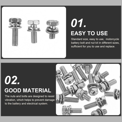 ✅ Standardowy rozmiar, łatwy w użyciu, zestaw śrub i nakrętek do akumulatora motocyklowego w różnych rozmiarach, wystarczający do użycia i wymiany.