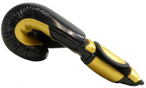 Rękawice bokserskie RPU-9 w kolorystyce czarno-złotej wykonane z wysokiej jakości skóry syntetycznej. W wydłużony mankiet o długości 13 cm wszyte pianki usztywniające i chroniące okolice nadgarstka.