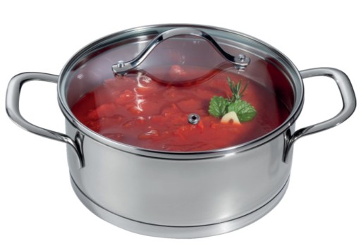Dopasowana pokrywa ze szkła hartowanego uszczelnia ciepło i wilgoć, posiada odpowietrznik i trwały uchwyt ze stali nierdzewnej. Przezroczysta szklana pokrywa umożliwia monitorowanie procesu gotowania.