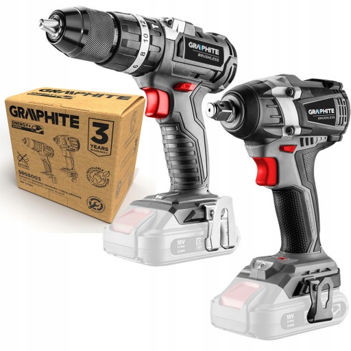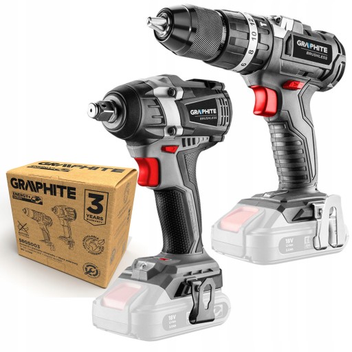 Drugim elektronarzędziem w zestawie jest dwubiegowa wiertarko-wkrętarka GRAPHITE, współpracująca z akumulatorami 18V Li-Ion GRAPHITE Energy+. W konstrukcji urządzenia zastosowano nowoczesny i wydajny silnik bezszczotkowy, który w porównaniu z konstrukcjami szczotkowymi charakteryzuje się dłuższym czasem pracy na jednym naładowaniu, większą kontrolą nad prędkością obrotową oraz mniejszymi wymiarami, co przekłada się na bardziej zwartą i kompaktową budowę całego urządzenia. Przekładnia planetarna została wykonana z wysokogatunkowej stali. Maksymalna prędkość obrotowa wrzeciona na pierwszym biegu wynosi 500, a na drugim 1700 obrotów na minutę. Maksymalny moment obrotowy wynosi 38 Nm (wkręcanie miękkie) / 58 Nm (twarde) i może być regulowany poprzez 16-stopniowe sprzęgło z dodatkowymi opcjami wiercenia oraz wiercenia z udarem. Samozaciskowy metalowy uchwyt pozwala na stosowanie osprzętu o średnicy 2-13 mm. Urządzenie wyposażono w elektryczny hamulec silnika i automatyczną blokadę wrzeciona. Dioda LED, uruchamiana automatycznie, podświetla miejsce pracy. Ergonomiczny kształt rękojeści i zwarta konstrukcja wiertarko-wkrętarki pozwalają na wygodną pracę także w trudnych warunkach. Rękojeść została pokryta materiałem antypoślizgowym, dzięki czemu elektronarzędzie pewnie leży w dłoni. Klucz udarowy oraz wiertarko-wkrętarka marki GRAPHITE to sprawdzone elektronarzędzia dla profesjonalistów i majsterkowiczów.