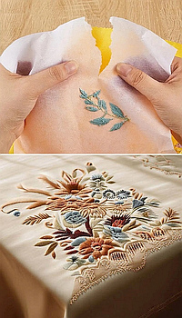 Po zakończeniu haftowania Wydzieranie (odrywanie) możliwe jest w KAŻDYM KIERUNKU (nie tylko w jednym, jak flizelina krawiecka)