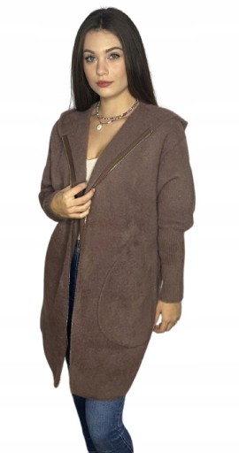 Płaszczyk z Alpaki z kapturem - czekoladowy