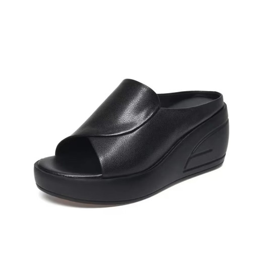 ЧЕРНЫЕ КОЖАНЫЕ ТАПОЧКИ НА ПЛАТФОРМЕ ALLADIES* AS8204