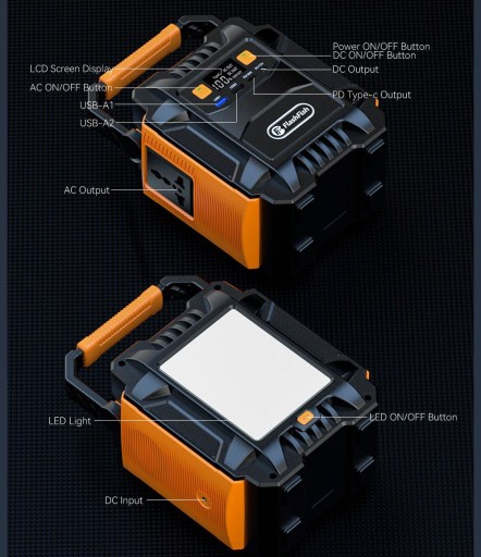 【Wyświetlacz LCD i 3 tryby światła LED】 Duży ekran LCD pozwala wyraźnie zobaczyć stan zewnętrznego zasilania/ładowania/wyjścia AC/wyjścia DC. 3 tryby: tryb latarki do oświetlenia w nocy, tryb SOS do ratownictwa, tryb stroboskopowy do ostrzegania.