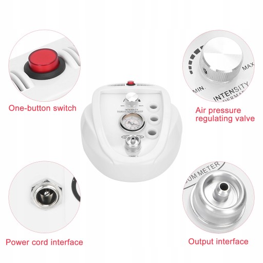 1 x Host 1 x Instrukcja 1 x Wtyczka 3 x Uchwyt do mikrodermabrazji 9 x Sonda do mikrodermabrazji 1 x Worek z bawełnianym filtrem M 1 x Worek z bawełnianym filtrem L1 x Wąż próżniowy 4 x Mały miękki pierścień 2 x Duży miękki pierścień