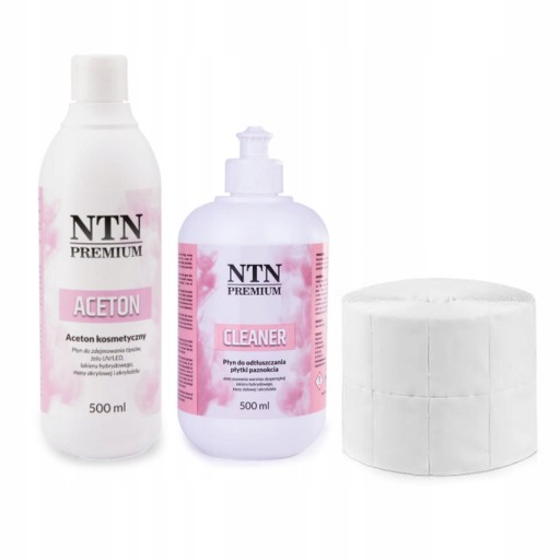 Zestaw płynów NTN Cleaner 500 ml + Aceton 500 ml + Waciki