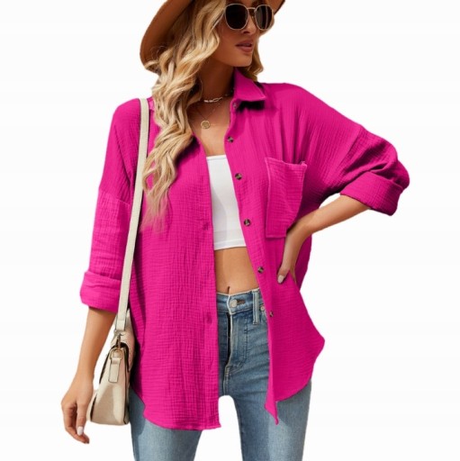 Koszula z długim rękawem, zapinana po całości na guziki. Idealna propozycja na nadchodzący sezon, wykonana z przewiewnego materiału dzięki czemu zapewnia komfort noszenia. Idealna także na kostium kąpielowy .Prosty/oversizowy fason sprawdzi się w wielu stylizacjach. Dostępna w kilku wariantach kolorystycznych!