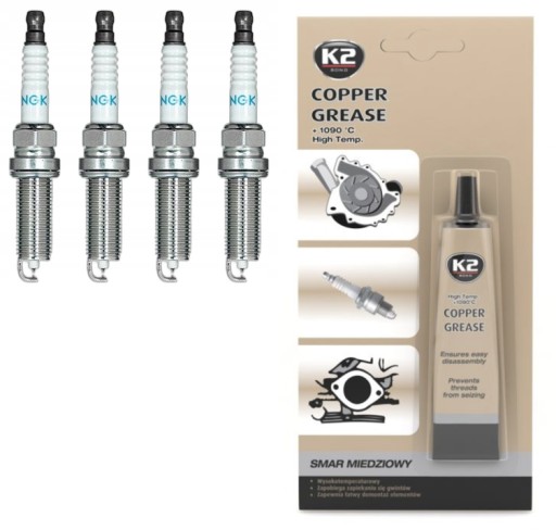 NGK 95003 Świeca zapłonowa - zestaw 4 sztuk + smar miedziowy K2 Copper Grease