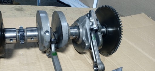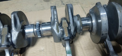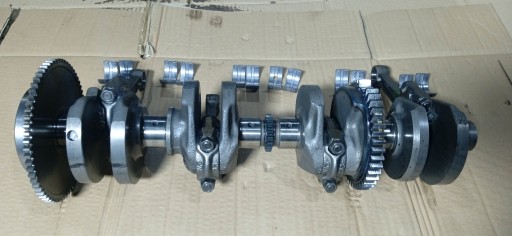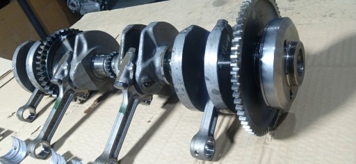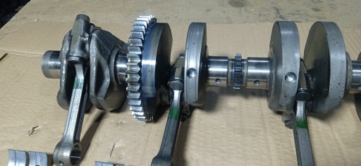 Wał korbowy kompletny ZE SPRZĘGŁEM ROZRUSZNIKA sprawny stan bardzo dobry, KORBOWODY BEZ LUZÓW PANEWKI NIE ZATARTE ŁADNE CZOPY NIE POPRZYCIELANE, PANEWKI NA SWOICH MIEJSCACH PO PRZYCZEPIANE TAK JAK BYŁY WYCIĄGNIĘTE