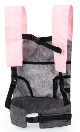 Wózek posiada pokrowiec i opuszczany daszek, spacerówkę wyposażono w pasy bezpieczeństwa, które przytrzymają lalę.