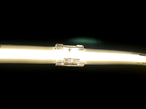 UWAGA! Należy pamiętać, że złączka "dodaje" ok 2mm szerokości do taśmy COB. Należy to uwzględnić przy wyborze profilu aluminiowego.