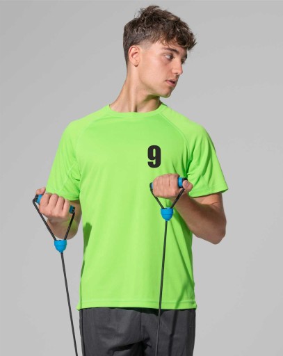T-shirt sportowy. Krój reglan ze szwem dekoracyjnym w połowie rękawa. Oddychający materiał szybkoschnący. 100% poliester teksturowany. Materiał oddychający i szybkoschnący.