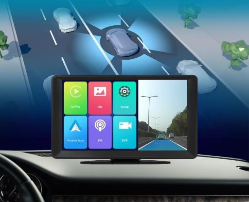 Stacja multimedialna z 9 calowym monitorem dotykowym, na którym możesz obsługiwać bezprzewodowo działające Android Auto i CarPlay. Do tego to samo urządzenie daje możliwość rejestrowania trasy (przód + tył) gdzie kamera tylna może być wykorzystana jako kamera cofania.