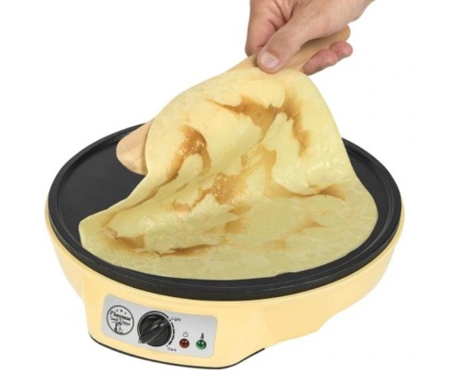 Bestron Sweet Dreams twórca krepy Zrób najsmaczniejsze domowej roboty naleśniki za pomocą urządzenia do robienia naleśników Bestron. W mgnieniu oka można zrobić kilka pysznych kresek. Blacha ma nieprzywierającą powłokę, dzięki czemu krepy można łatwo obracać. Pokrętłem obrotowym można ustawić temperaturę, za pomocą której można określić, czy chce się zrobić jasnobrązowe czy ciemnobrązowe krepy. Lampka sygnalizacyjna wskazuje, czy kremiarka ma odpowiednią temperaturę do użycia. Z antypoślizgiem na dole, krepownica utrzymuje się pewnie na miejscu i nie przesuwa się.