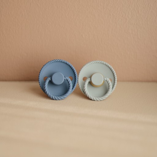 Smoczki marki FRIGG to esencja piękna w swojej prostocie. Charakterystyczny styl boho to element wyróżniający tej Duńskiej marki. Tarcza smoczka jest odpowiednio wyprofilowana aby nie dodykać deliatnej skóry dziecka, a tym samym zapobiegać pojawianiu się krostek, zaczerwienień i innym podrażnieniom skóry. FRIGG Rope (linka), inspiruje do przemyśleń o przygodach które dotyczą siły, wysokości i głębokości. Lina to element niezbędny do uprawiania takich sportów jak żeglarstwo, wspinaczka czy trekking górski. Wzór ten reprezentuje bezpieczeństwo i stabilność, w momentach kiedy kolejne kroki stają się ryzykowne czy też trudne do przewidzenia. To właśnie te cechy leżą u podstaw projektu FRIGG Rope. Inspiracja Linką jest jednoznaczna w designie smoczka Rope, cienka linka otacza tarczkę, a grubsza stanowi uchwyt smoczka. FRIGG Rope jest idalny dla chłpoców i dziewczynek które uwielbiają niesamowite przygody.