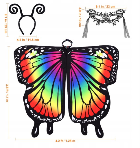 ✅To zestaw dla dzieci: peleryna w kształcie skrzydeł motyla, koronkowa maska i opaska na głowę, wykonany z wyselekcjonowanego najwyższej jakości materiału poliestrowego, lekki i przenośny, bezpieczny i bezwonny.