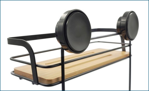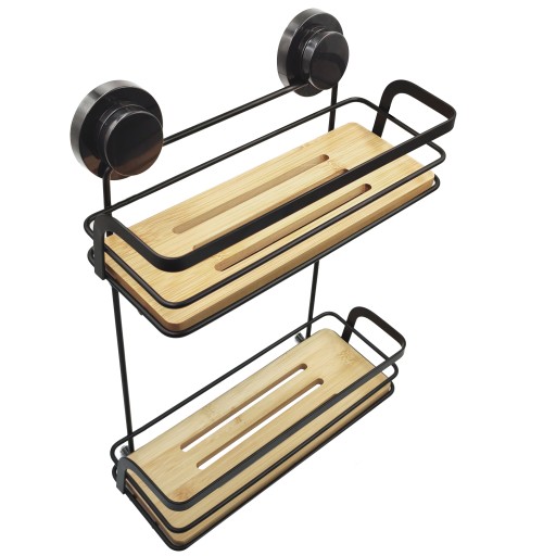 WISZĄCA PÓŁKA ŁAZIENKOWA LOFTOWA NA PRZYSSAWKI BAMBUS + METAL 2 PÓŁKI
