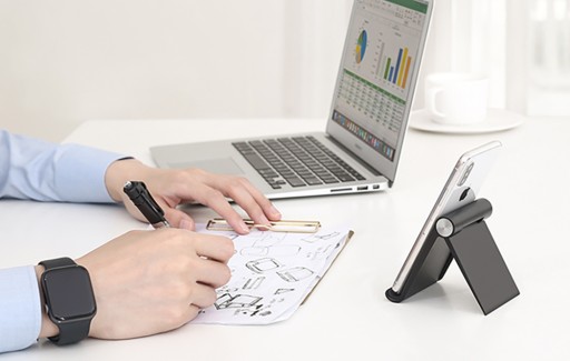 Uniwersalna, składana podstawka na telefon lub tablet. Poprawia komfort korzystania z urządzeń mobilnych, pozwala dopasować położenie telefonu do swoich potrzeb. Stojak jest wykonany z wysokiej jakości materiałów, które łączą w sobie funkcjonalność i elegancki wygląd.