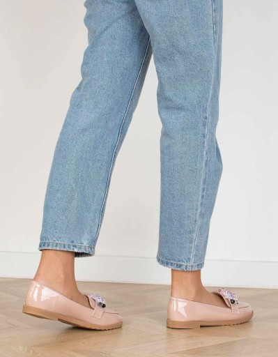 7960 BEŻOWE MOKASYNY PÓŁBUTY Z KRYSZTAŁKAMI SKÓRZANE WSUWANE 38