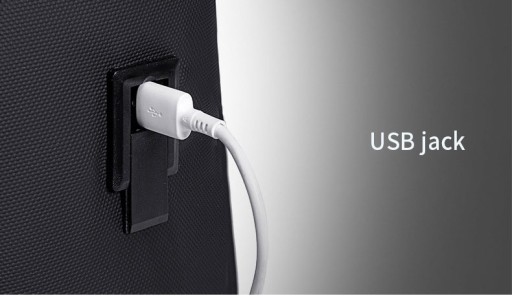 Plecak wyposażony jest w gniazdo USB, dzięki czemu nie ma konieczności wyciągania power banka z plecaka, aby naładować telefon. Uwaga, power bank nie jest częścią zestawu.