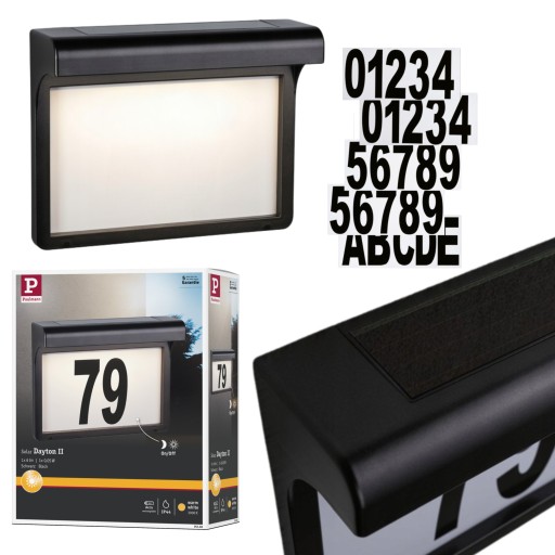 PODŚWIETLANY NUMER DOMU LED SOLARNA DAYTON II Z Czujnikiem Zmierzchu Czarny PL95388