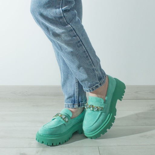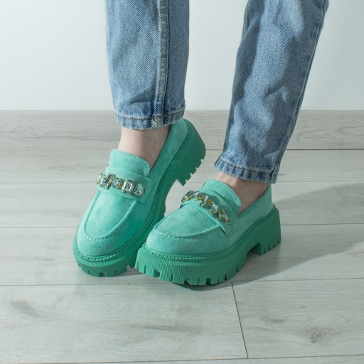 Женские замшевые мокасины на платформе с камнями Green Mint 41