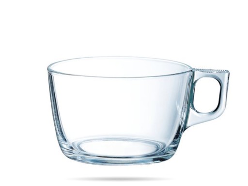 Duża filiżanka Voluto Jumbo Arcoroc. Kubek do kawy, herbaty, wykonany z wysokiej jakości szkła hartowanego. Szklanka do domu i gastronomii.