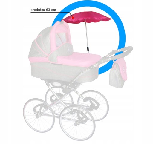 - Kolorystyka parasolek dopasowana do kolorów wózków dostępnych na rynku w Polsce.
