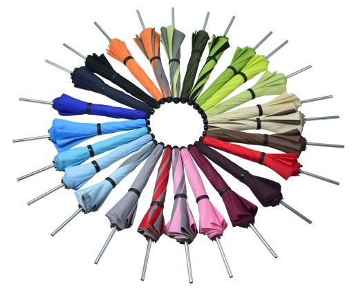 Kolorystyka parasolek dopasowana do kolorów wózków dostępnych na rynku w Polsce.