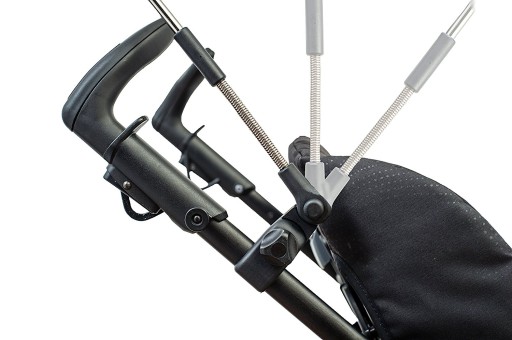 - uniwersalny uchwyt mocujący, pozwala na przymocowanie parasolki do każdego rodzaju wózka,