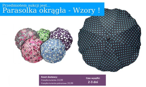 - Kolorystyka parasolek dopasowana do kolorów wózków dostępnych na rynku w Polsce.